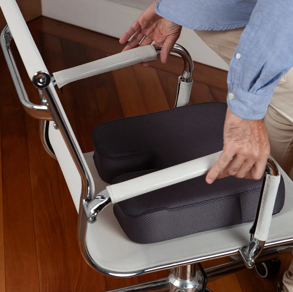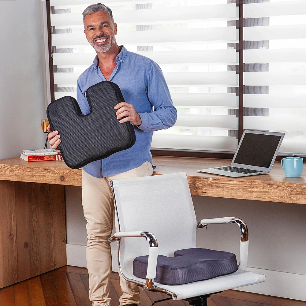 A almofada especial para cóccix cor preto proporciona suporte ortopédico para quem sofre com dores no cóccix ou desconforto ao sentar. O recorte anatômico alivia a pressão no cóccix, melhorando a postura e prevenindo dores. Ideal para uso em cadeiras de trabalho, veículos e cadeiras de rodas, com capa resistente e visual moderno.