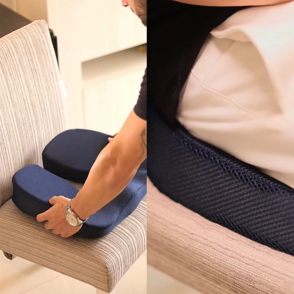 Seu design anatômico favorece o alinhamento postural e o correto posicionamento das pernas, promovendo muito mais conforto durante longos períodos sentados, seja no trabalho, em casa ou no carro.