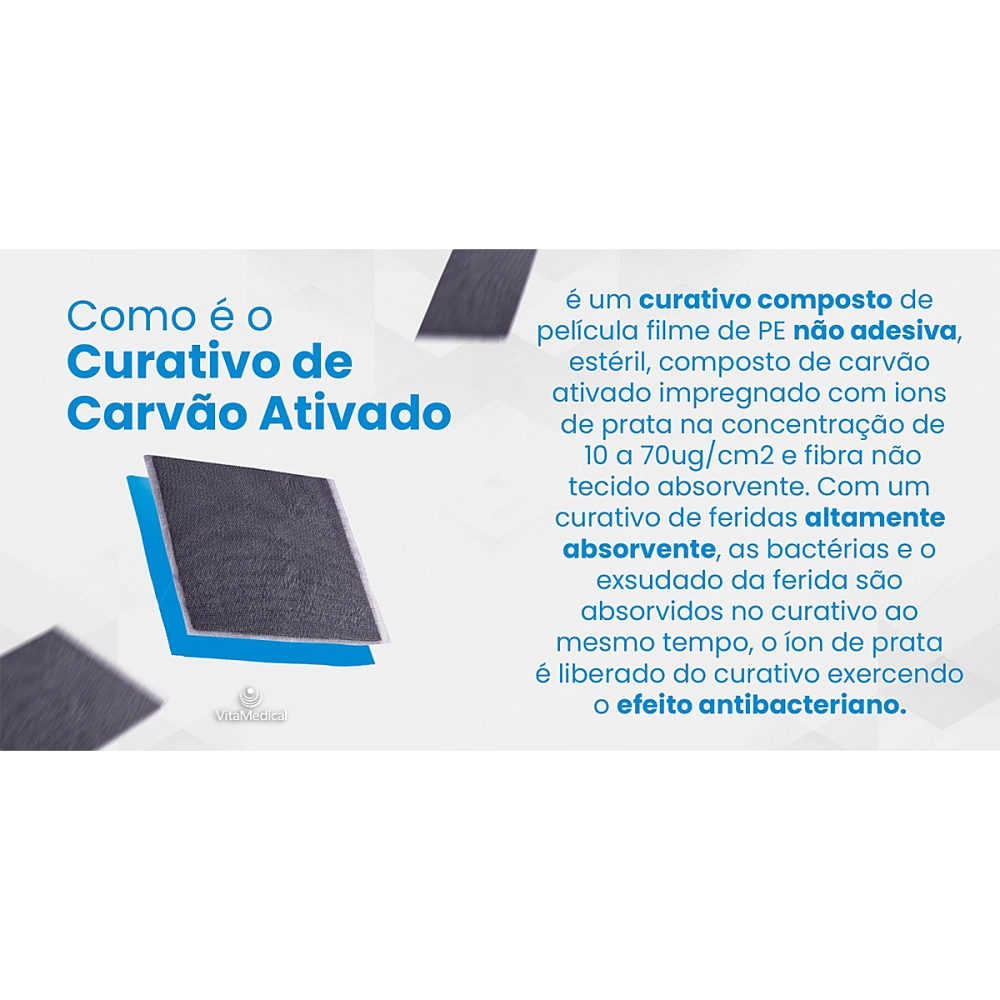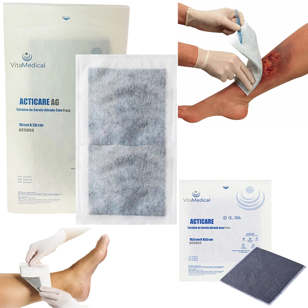Curativo De Carvão Ativado Com Prata Esterilizado Para Infecções Controle De Odores AG Vita Medical