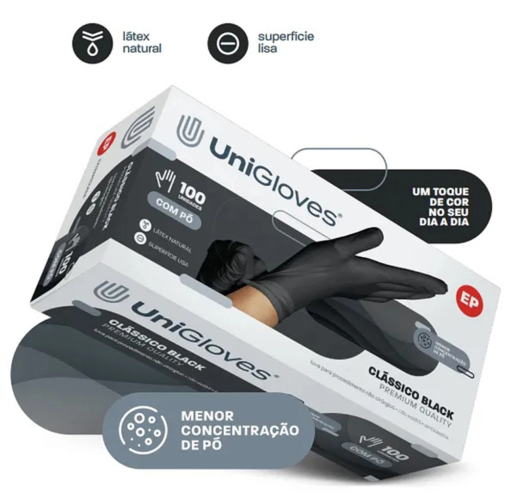 Luva Descartável Coloridas Resistente Para Procedimentos Látex Premium Pouco Pó Caixa Com 100 Unidades Unigloves