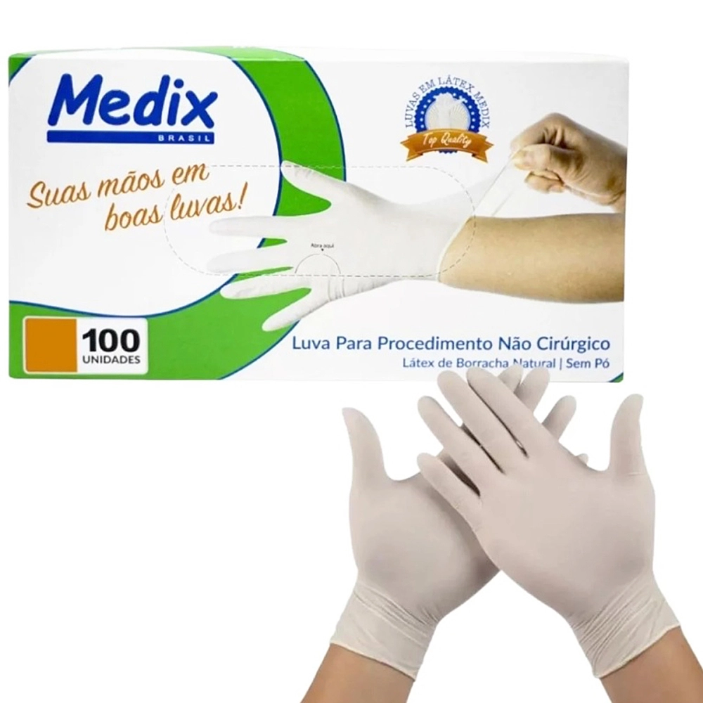 1 Caixa De Luvas Descartável Látex Para Procedimento Não Cirúrgico Lisa Sem Pó Uso Geral 100 unidades Medix.