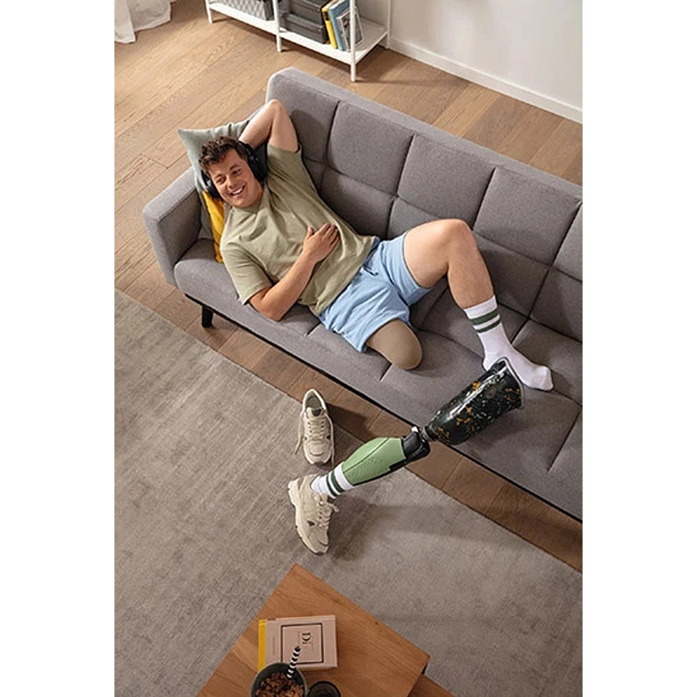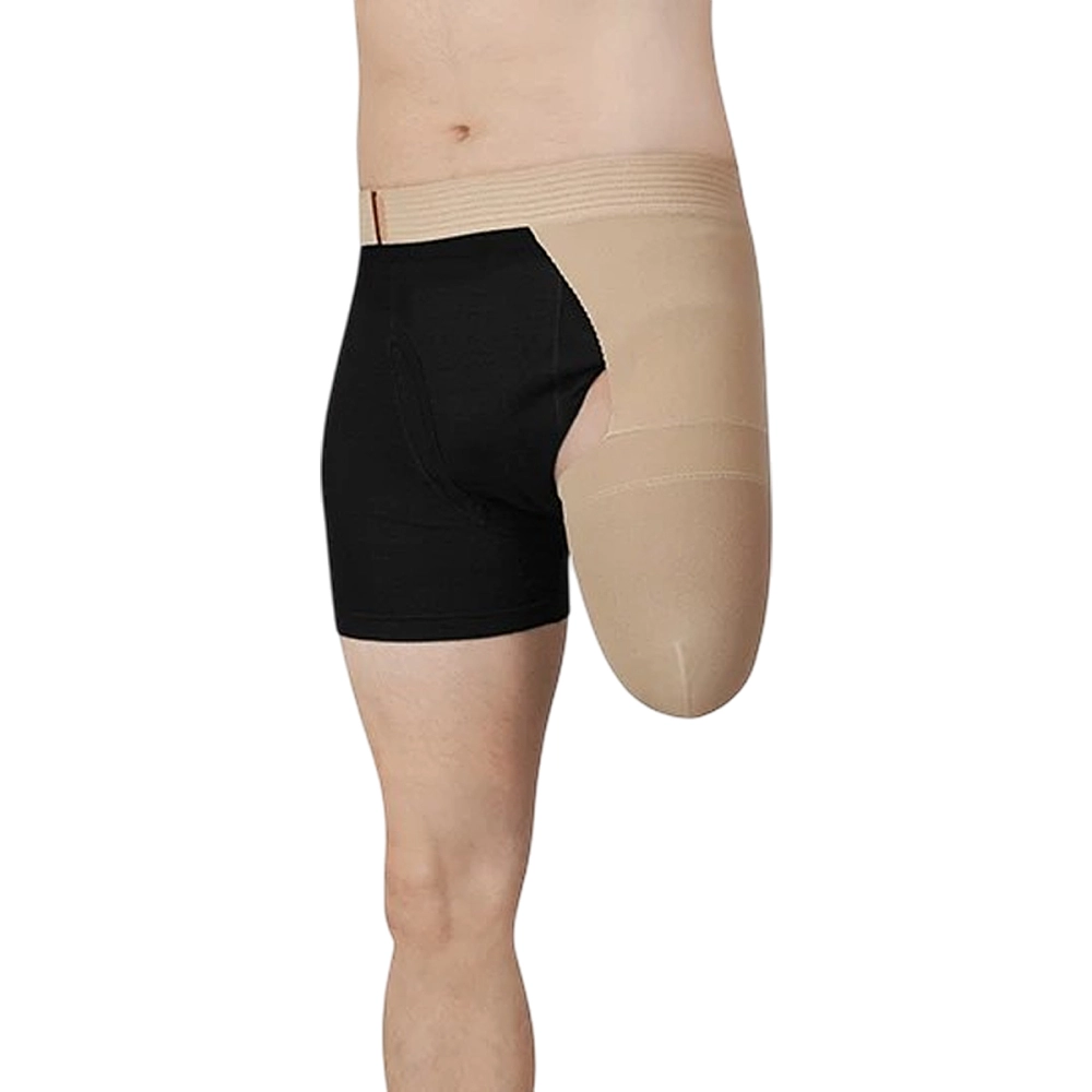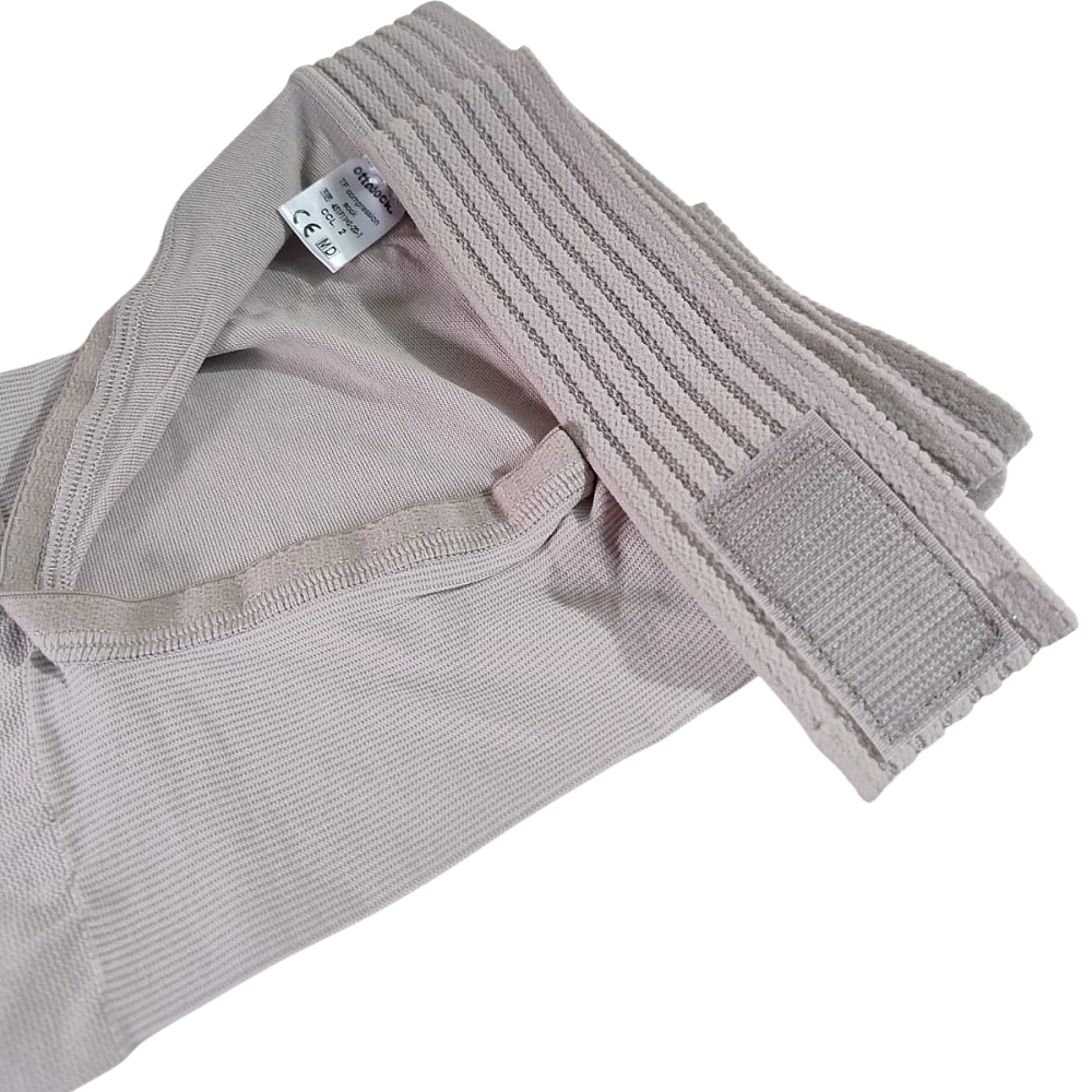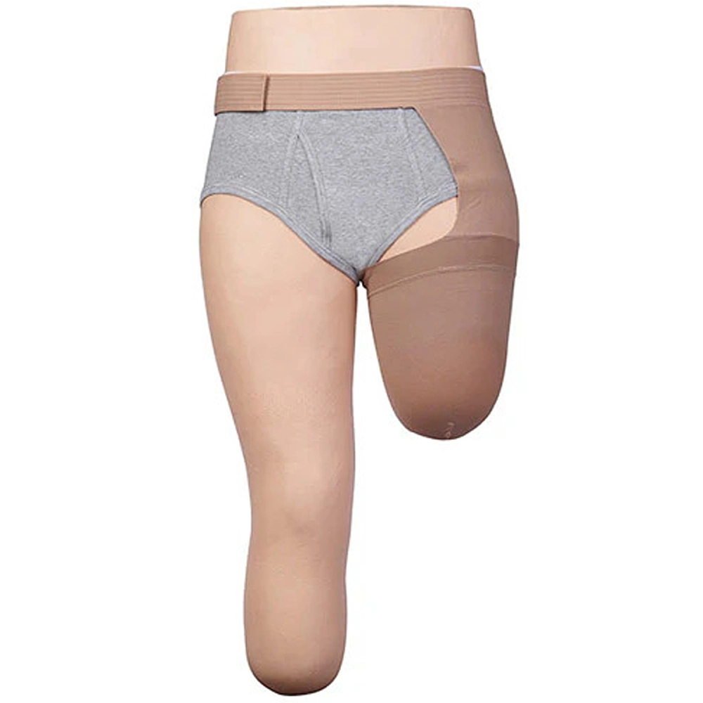 - A Meia de Coto Acima do Joelho com Cinto de Fixação na Anca é concebida para oferecer suporte e estabilidade superior a utilizadores com amputação acima do joelho.