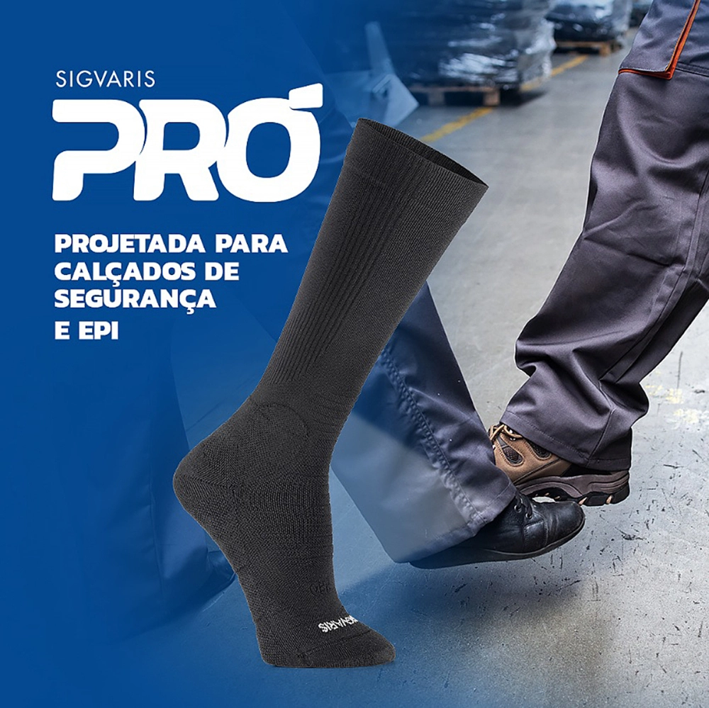 Usar a meia de compressão Pró com EPIs ajuda a aumentar a segurança e o conforto, ao mesmo tempo, em que oferece suporte muscular e circulatório, contribuindo para a saúde e o bem-estar do trabalhador.