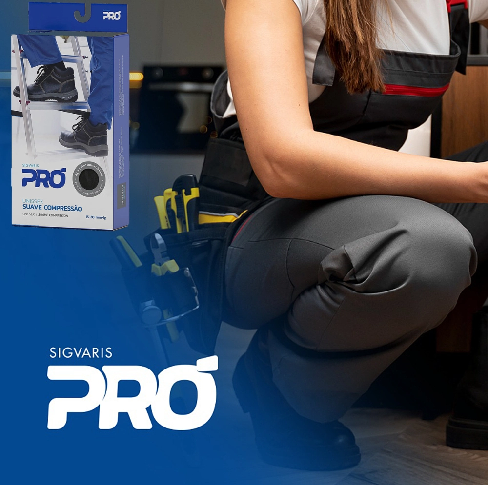 SIGVARIS PRÓ é um produto terapêutico que exerce compressão graduada em todo membro inferior. Foi desenvolvido para você que trabalha por longas horas do dia na mesma posição (sentado ou em pé) ou caminha muito e tem a sensação de pernas cansadas no fim do dia.