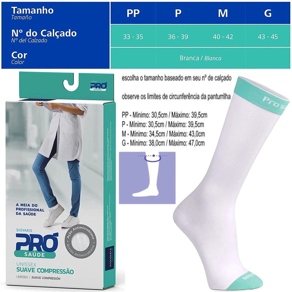 1 Par Meia De Compressão Suave Graduada 3/4 Pró Saúde Branca 15-20 mmHg Unissex Sigvaris.