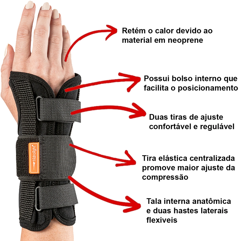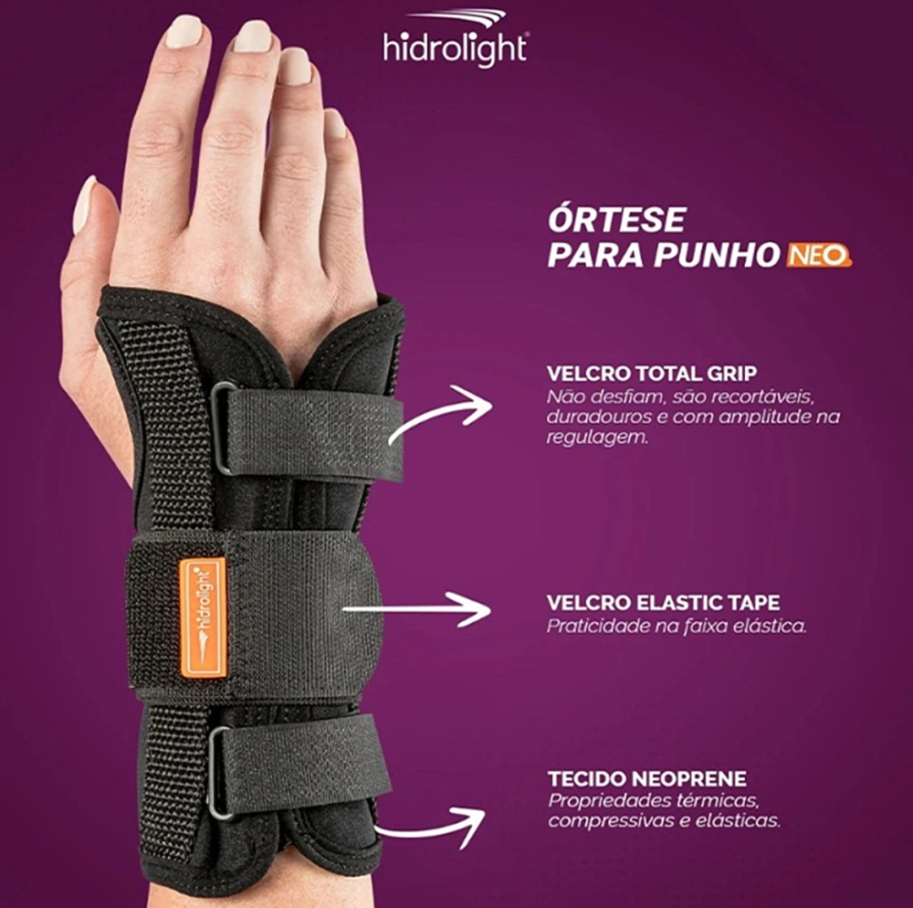 INDICAÇÕES: Imobilização parcial da articulação; reabilitação de fraturas de punho; L.E.R. (lesões por esforços repetitivos) e D.O.R.T. (distúrbios osteo musculares relacionados ao trabalho); tendinites, tenossinovites, lesões ligamentares e síndrome do túnel do carpo. CONSULTE UM ESPECIALISTA.