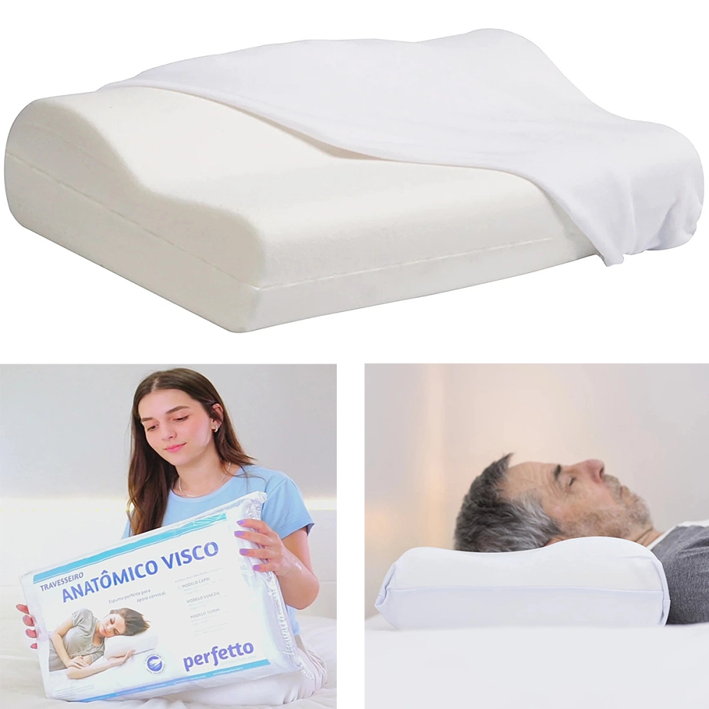 Travesseiro Anatômico Cervical Capri Perfil Baixo Visco Elástico 50 x 31 x 10/7 Cm Tecnologia 201002 Perfetto